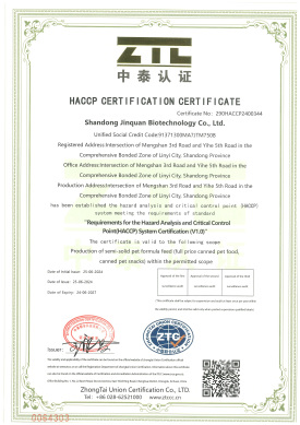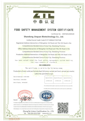Shandong Jinquan Biotechnology Co., Ltd., ist eine von natürlichen Personen investierte und kontrollierte Gesellschaft mit beschränkter Haftung. Das Unternehmen wurde im Jahr 2018 gegründet und beteiligt sich hauptsächlich an der Produktion und dem Verkauf von halbfarbigen Pet Compes Feed, wodurch Kunden qualitativ hochwertige Service-Garantie-Funktionen bieten. Das Unternehmen verfügt über eine halbfeste Produktionslinie für PET-Feed-Verarbeitung, 50 Cat-Bar-Produktionslinien und 4 vollautomatische Bag-Verpackungsmaschinen. Es wird fortschrittliche Produktionstechnologie und ein striktes Qualitätskontrollsystem einführen, um qualitativ hochwertige, sichere und effiziente Produkte zu schaffen. Der Projektkonstruktion des Unternehmens kann eine jährliche Produktions- und Verarbeitungskapazität von 20000 Tonnen semi-soliden Haustierfutter erzielen. Die Produkte werden hauptsächlich im Inland mit Exporten als Ergänzung verkauft. Shandong Jinquan Biotechnology Co., Ltd. wird sich immer an den Unternehmen des Unternehmens von "Qualität zuerst, Reputation zuerst, perfekter Service, kundenorientierter und qualitativ hochwertiger Entwicklung" halten. Wir sind der festen Überzeugung, dass die Viehindustrie die vielversprechendste und lohnendste Branche ist, nach der wir uns bemühen können, und wir werden uns bis zu diesem Zweck unablässige Bemühungen unternehmen. Mit der Aufmerksamkeit und Unterstützung von Führungskräften und Experten aus allen Lebensbereichen sowie der Liebe und Anerkennung unserer Kunden und Freunde werden wir es besser machen und unsere etablierten Ziele erreichen und der Gesellschaft und den Menschen mit hervorragenden Produkten etwas zurückgeben.